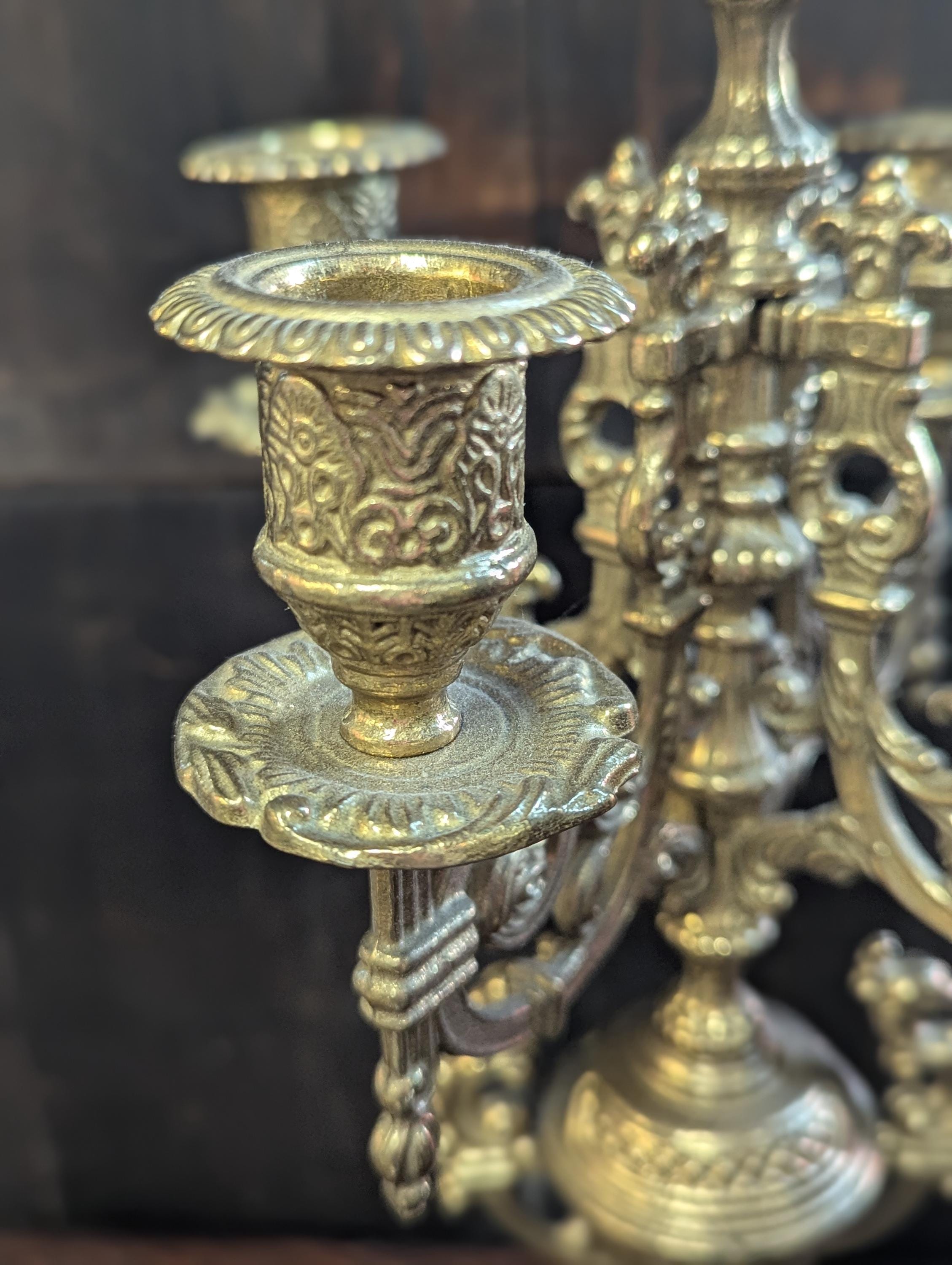 Stunning Vintage Baroque Style made in Italy Brass Brevetto Candelabra That Holds 5 Total Candles